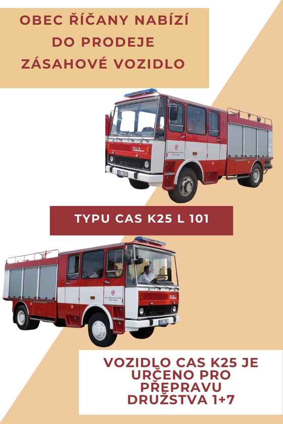 Obec Říčany nabízí k prodeji zásahové vozidlo CAS K25 L 101.